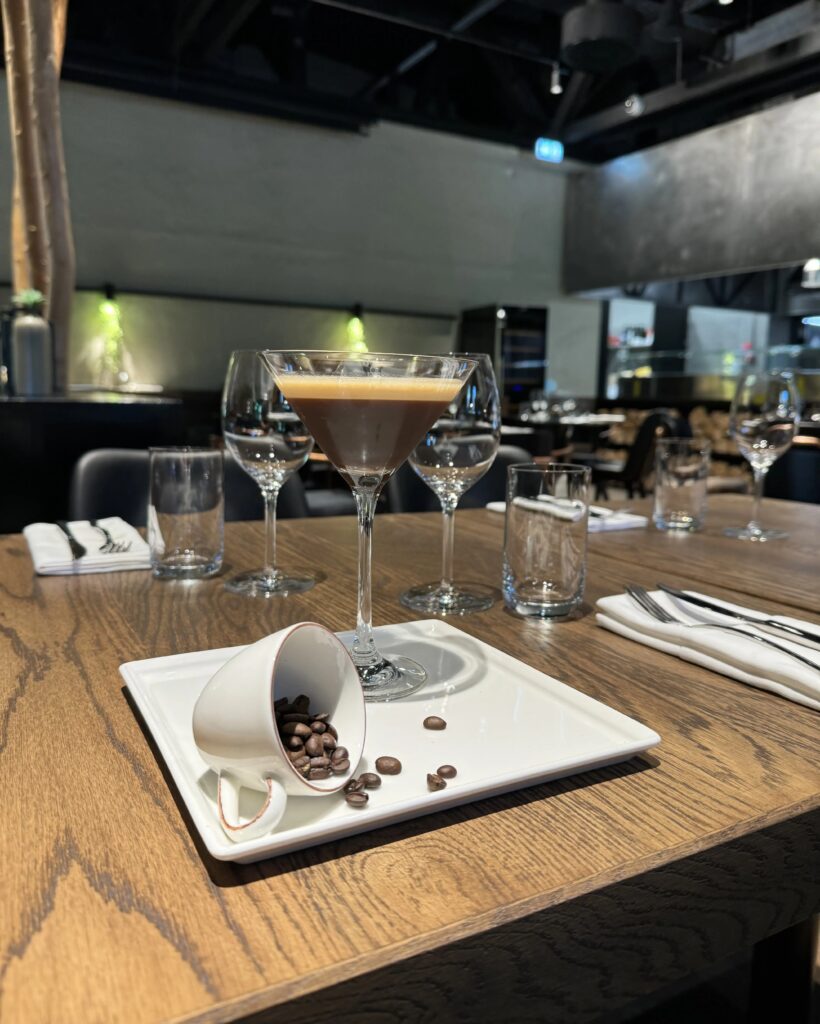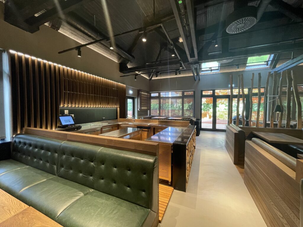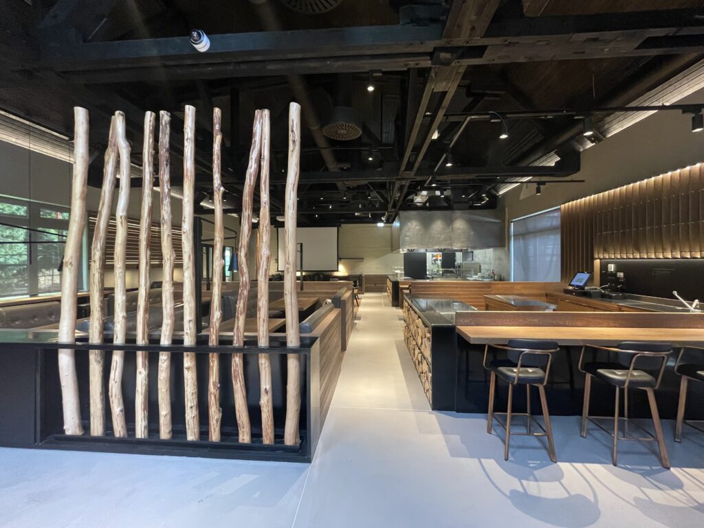 Već na samom ulazu u prostor, vizualni dojam odaje da će i ponuda biti posebnija kao i po drugim gurmanskim kriterijima od postojećih u regiji. Interijerom dominiraju udobni kožni separei u kojima je gost tretiran na način da razumije kako je došao na mjesto gdje se od njega traži da odvoji više vremena nego što je potrebno da samo brzo objeduje. Opuštajuća atmosfera tamnijih boja prostora, lounge glazba iz vrhunskog razglasa te vizura koja svakome pruža mogućnost vidjeti događanja i radnje koje izvode kuhari u otvorenoj cooking show kuhinji sa istaknutim roštiljem na fronti, jednako kao i barmeni za otvorenim barom, gotovo garantira zanimljivu ponudu.