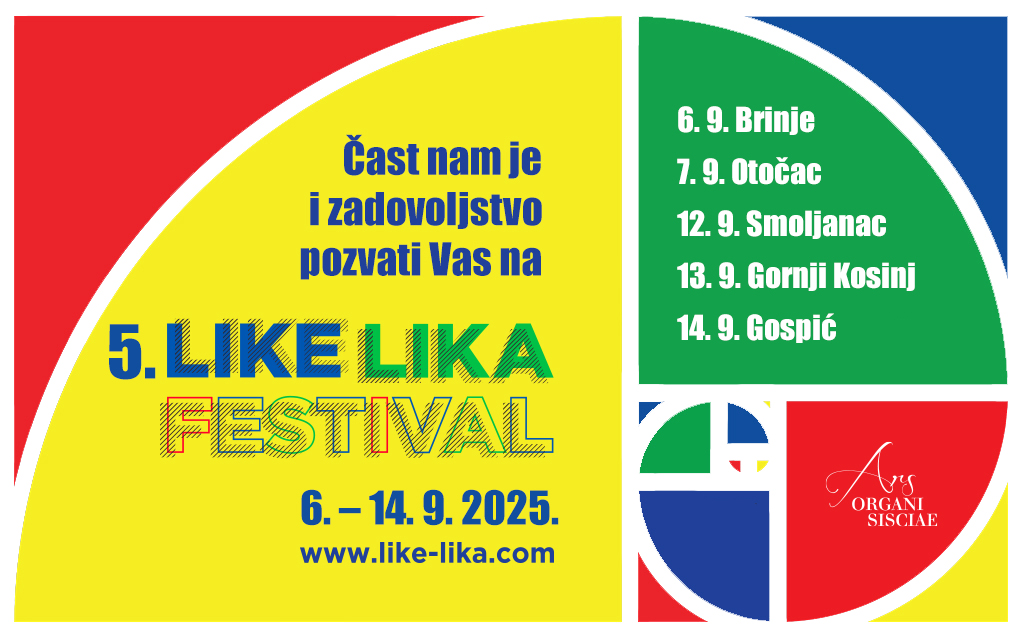 Peto izdanje Like Lika Festivala održat će se od 6. do 14. rujna 2025. u pet gradova i mjesta Like: Smoljanac, Brinje, Otočac, Gornji Kosinj i Gospić. Festival pruža jedinstvenu priliku za otkrivanje bogate kulturne i prirodne baštine Like, uključujući povijesne tragove prvog hrvatskog tiskara Ambroza Kacitića, vođene šetnje netaknutom prirodom do ponora rijeke Like, te vrhunsku glazbu koja u Lici posebno svečano odjekuje.