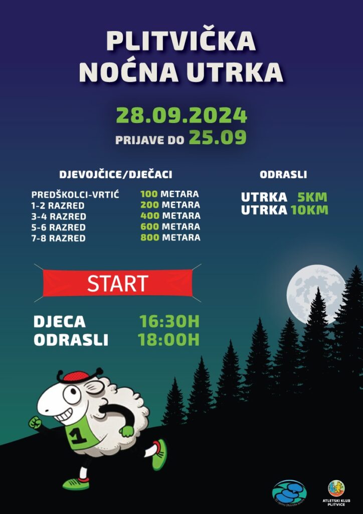Atletski klub Plitvice organizira Plitvičku noćnu utrku koja će se održati u subotu, 28. rujna 2024. godine, u Korenici ispred zgrade Općine Plitvička Jezera. Ova popularna sportska manifestacija uključuje utrke za djecu i odrasle, koncert te je idealna prilika za sve ljubitelje trčanja da sudjeluju i uživaju u natjecateljskoj atmosferi.