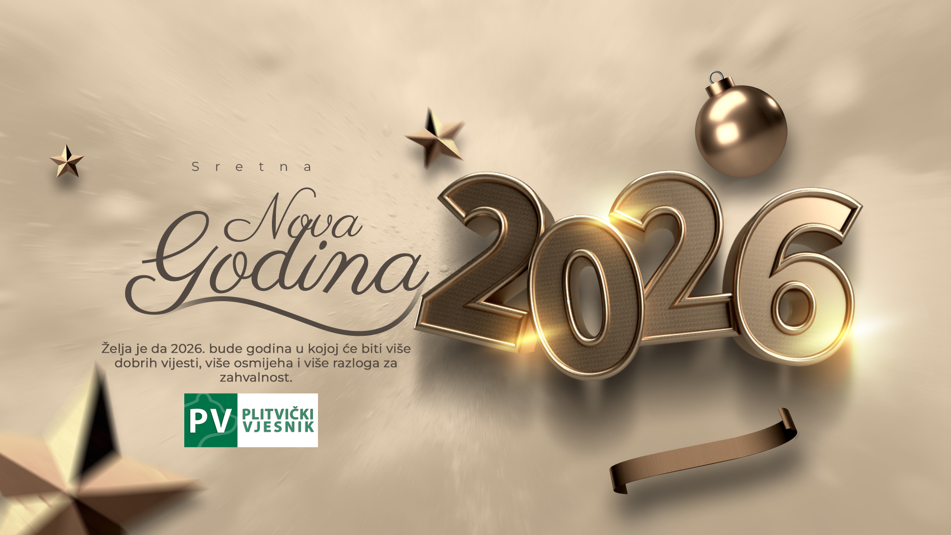 Plitvički vjesnik zahvaljuje na povjerenju i podršci kroz proteklu godinu. Svaka poruka, svako čitanje, svaka podijeljena objava i svaki prijedlog teme poticaj su da i dalje pratimo događaje, ljude i priče koje su važne, te da ostanemo blizu zajednici i onima koji nas čitaju, gdje god bili.